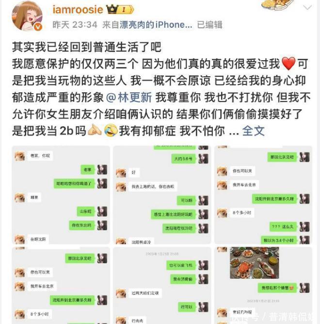 她还说过,自己只愿意为两三个人去撑腰,原因是这些人确实曾经真心喜欢过她。而那些把她当成“玩物”的人,她绝对不会给面子。因为这已经对她的身心造成了很大的伤害,这里的字其实打错了,这一条还提到了林更新,表达出来的语气看起来挺愤怒的。