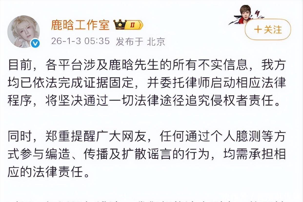 这一天基本上可以叫做“内娱男星集体辟谣日”了,有网友还调侃说,今年是“2026晓迪元年”。元旦假期还没完全结束,刚刚又蹦出来这么一条重磅消息,真是让那些宅在家里无聊的网友们多了一份谈资啊!