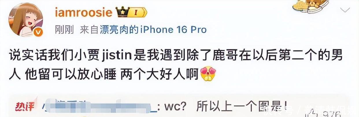 又发了一条评论,对Justin黄明昊夸得挺高,内容算是挺浓的,有提到遇到“鹿哥”之后,成为了第二个让人觉得靠谱的好男人。网友一下子就抓到重点,“所以之前那个是LH吗?”她倒没否认,不过接着又说和鹿哥“只是喝醉了躺在一张床上”,这逻辑也挺让人觉得疑惑。